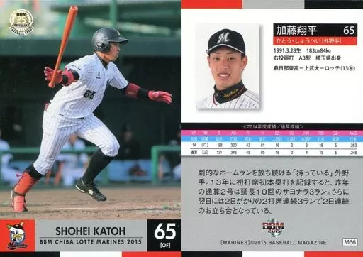 Nombre comercial en japonés: BBM/レギュラーカード/BBM2015 千葉ロッテマリーンズ M66 [レギュラーカード] : 加藤翔平