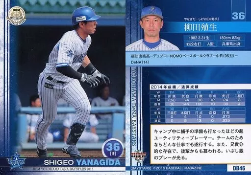 Nombre comercial en japonés: BBM/レギュラーカード/BBM2015 横浜DeNAベイスターズ DB46 [レギュラーカード] : 柳田殖生