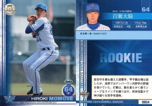 Nombre comercial en japonés: BBM/レギュラーカード/BBM2015 横浜DeNAベイスターズ DB54 [レギュラーカード] : 百瀬大騎