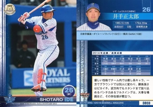 Nombre comercial en japonés: BBM/レギュラーカード/BBM2015 横浜DeNAベイスターズ DB59 [レギュラーカード] : 井手正太郎