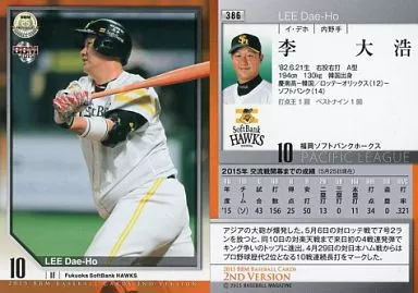 Nombre comercial en japonés: BBM/レギュラーカード/福岡ソフトバンクホークス/BBM2015 ベースボールカード 2ndバージョン 386 [レギュラーカード] : 李大浩