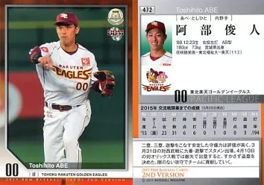 Nombre comercial en japonés: BBM/レギュラーカード/東北楽天ゴールデンイーグルス/BBM2015 ベースボールカード 2ndバージョン 472 [レギュラーカード] : 阿部俊人