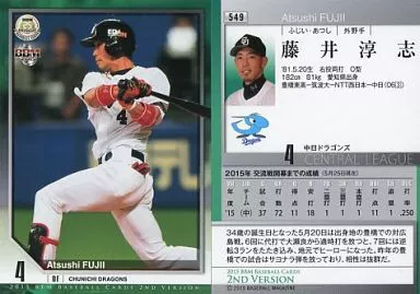 BBM / Regular card / Chunichi Dragons / BBM2015 Baseball Card 2 nd version 549 [tarjeta regular] : Atsushi Fujii