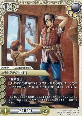 Nombre comercial en japonés: ラストクロニクル/C/ユニット/白/ブースターパック 天空編III 9-013C[C]:メルアンの戦闘員