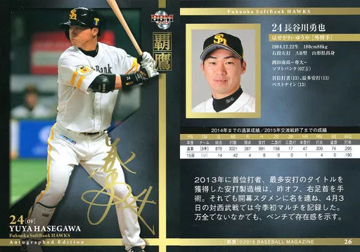 Nombre comercial en japonés: BBM/レギュラーカード/BBM2015 福岡ソフトバンクホークス「覇鷹」 26 [レギュラーカード] : 長谷川勇也