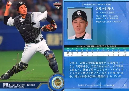 Nombre comercial en japonés: BBM/レギュラーカード/BBM2015 中日ドラゴンズ「逆襲の竜」 14 [レギュラーカード] : 松井雅人