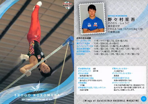 BBM / tarjeta regular / BBM2014 gimnasia NIPPON WINGS of Gold 02 [tarjeta regular] : 笙吾 Nonomura