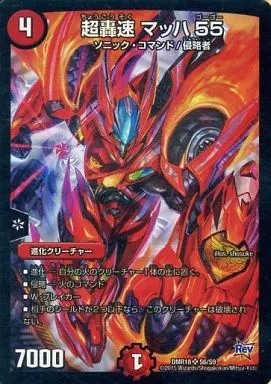 Nombre comercial en japonés: デュエルマスターズ/SR/火/[DMR-18]革命 拡張パック第2章 時よ止まれミラダンテ!! S6/S9[SR]:超轟速 マッハ 55