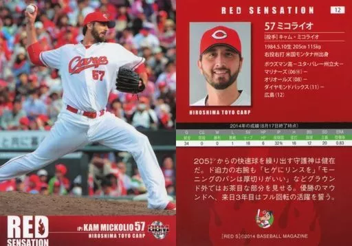 Nombre comercial en japonés: BBM/レギュラーカード/広島東洋カープ/BBM2014 広島東洋カープ RED SENSATION 12 [レギュラーカード] : ミコライオ