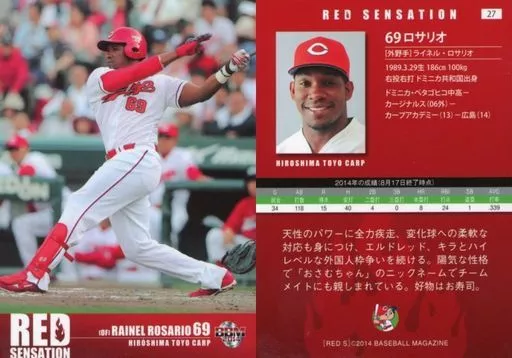 Nombre comercial en japonés: BBM/レギュラーカード/広島東洋カープ/BBM2014 広島東洋カープ RED SENSATION 27 [レギュラーカード] : ロサリオ