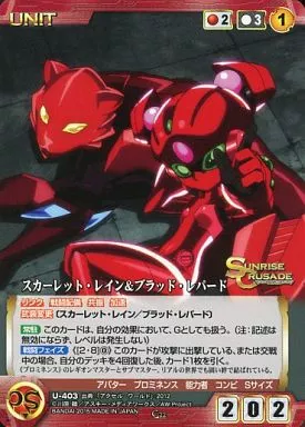 Nombre comercial en japonés: クルセイド/C/UNIT/赤/サンライズクルセイド 第22弾~無敵の戦士~ U-403[C]:スカーレット・レイン&ブラッド・レパード