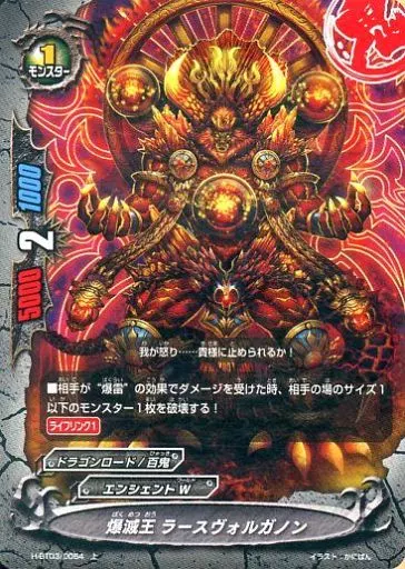 Nombre comercial en japonés: バディファイト/上/モンスター/エンシェントW/[BF-H-BT03]ハンドレッド ブースターパック 第3弾 角王大出陣!! H-BT03/0064[上]:爆滅王 ラースヴォルガノン