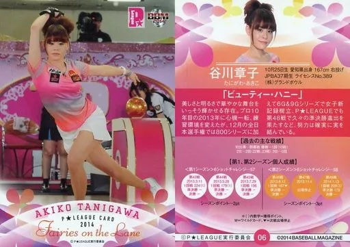 Nombre comercial en japonés: BBM/レギュラーカード/BBM 2014 P★LEAGUE カードセット Fairies on the Lane~レーンの妖精たち~ 06 [レギュラーカード] : 谷川章子
