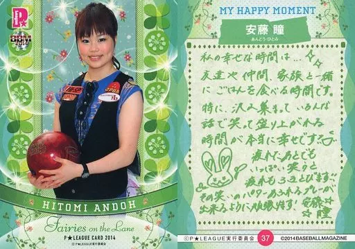 Nombre comercial en japonés: BBM/レギュラーカード/BBM 2014 P★LEAGUE カードセット Fairies on the Lane~レーンの妖精たち~ 37 [レギュラーカード] : 安藤瞳