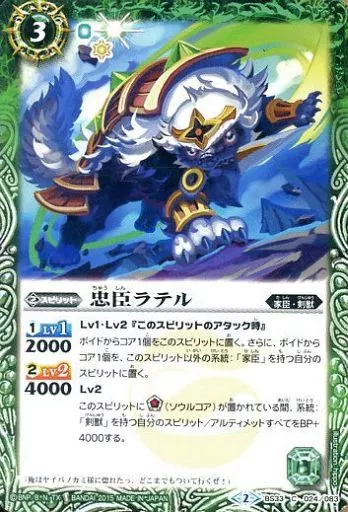 Nombre comercial en japonés: バトルスピリッツ/C/スピリット/烈火伝 第3章 BS33-024[C]:忠臣ラテル