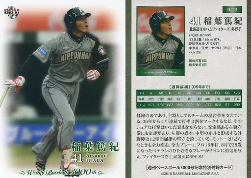 Nombre comercial en japonés: BBM/プロモーションカード/北海道日本ハムファイターズ/週刊ベースボール3000号記念特別付録カード 9/12[プロモーションカード]:稲葉篤紀