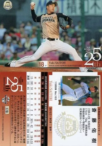 Nombre comercial en japonés: BBM/レギュラーカード/北海道日本ハムファイターズ/BBM2015 BBMベースボールカード25th Anniversary 170 [レギュラーカード] : 斎藤佑樹