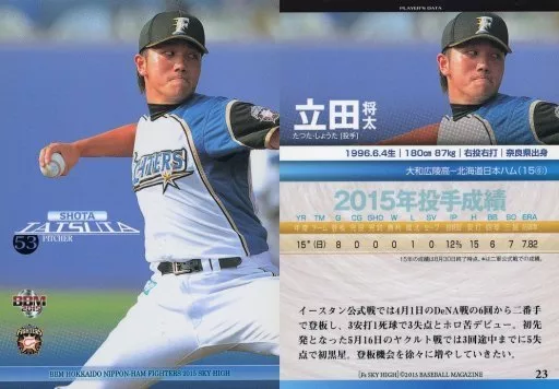 Nombre comercial en japonés: BBM/レギュラーカード/BBM2015 北海道日本ハムファイターズ「SKY HIGH」 23 [レギュラーカード] : 立田将太