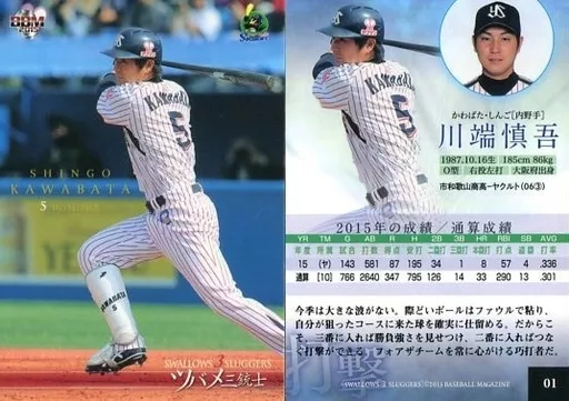 Nombre comercial en japonés: BBM/レギュラーカード/BBM2015 東京ヤクルトスワローズ「SWALLOWS 3 SLUGGERS」 01 [レギュラーカード] : 川端慎吾