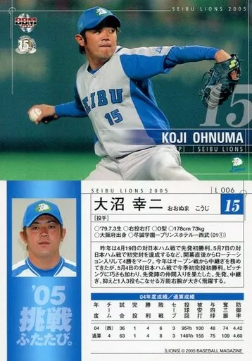 Nombre comercial en japonés: BBM/レギュラーカード/BBM2005 西武ライオンズ L006 [レギュラーカード] : 大沼幸二