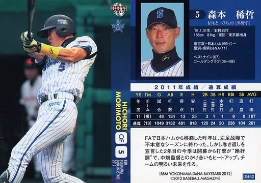 Nombre comercial en japonés: BBM/レギュラーカード/BBM2012 横浜DeNAベイスターズ DB62 [レギュラーカード] : 森本稀哲