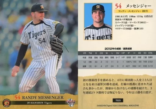 Nombre comercial en japonés: BBM/レギュラーカード/阪神タイガース/BBM2013 阪神タイガース T025 [レギュラーカード] : メッセンジャー