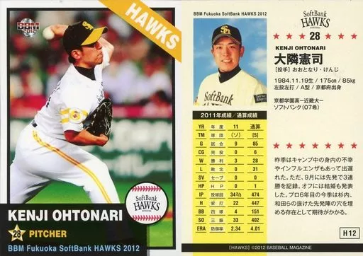 Nombre comercial en japonés: BBM/レギュラーカード/BBM2012 福岡ソフトバンクホークス H12 [レギュラーカード] : 大隣憲司