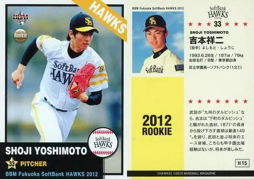Nombre comercial en japonés: BBM/レギュラーカード/BBM2012 福岡ソフトバンクホークス H15 [レギュラーカード] : 吉本祥二