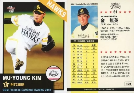 Nombre comercial en japonés: BBM/レギュラーカード/BBM2012 福岡ソフトバンクホークス H29 [レギュラーカード] : 金無英