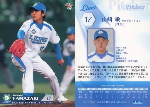 Nombre comercial en japonés: BBM/レギュラーカード/BBM2008 西武ライオンズ L08 [レギュラーカード] : 山崎敏