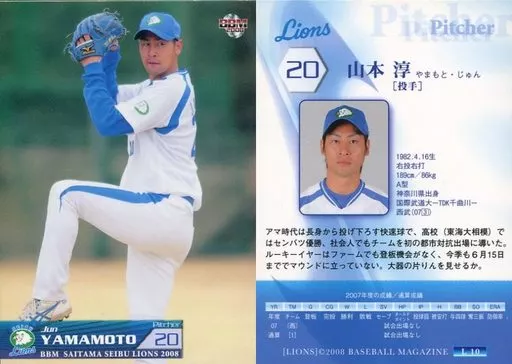 Nombre comercial en japonés: BBM/レギュラーカード/BBM2008 西武ライオンズ L10 [レギュラーカード] : 山本淳