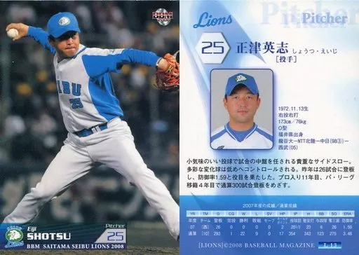Nombre comercial en japonés: BBM/レギュラーカード/BBM2008 西武ライオンズ L13 [レギュラーカード] : 正津英志