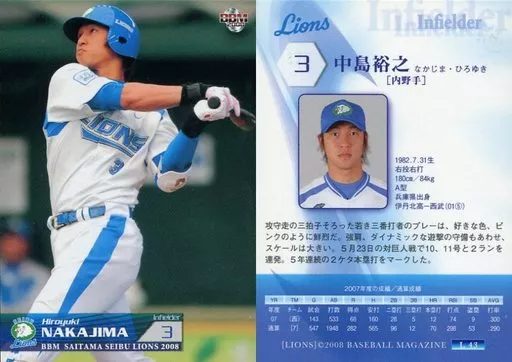 Nombre comercial en japonés: BBM/レギュラーカード/BBM2008 西武ライオンズ L43 [レギュラーカード] : 中島裕之