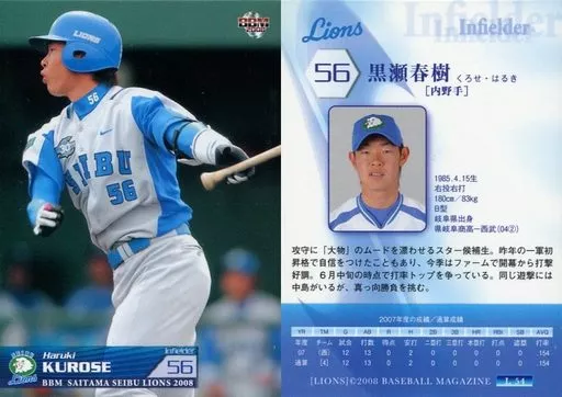 Nombre comercial en japonés: BBM/レギュラーカード/BBM2008 西武ライオンズ L54 [レギュラーカード] : 黒瀬春樹