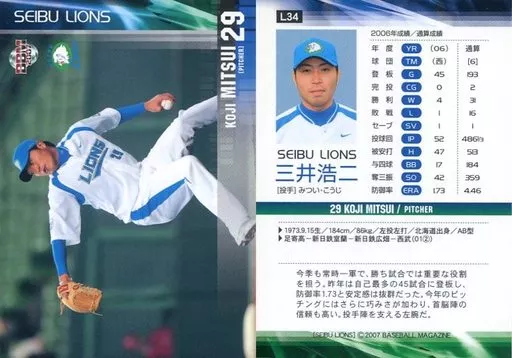 Nombre comercial en japonés: BBM/レギュラーカード/BBM2007 西武ライオンズ L34 [レギュラーカード] : 三井浩二