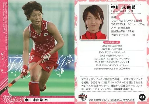 Nombre comercial en japonés: BBM/レギュラーカード/BBM2012 女子ホッケー日本代表さくらジャパンカード FULL Bloom 05 [レギュラーカード] : 中川未由希