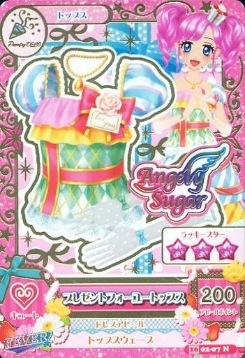 Nombre comercial en japonés: アイカツDCD/ノーマル/トップス/Angely Sugar/キュート/2016シリーズ 第2弾 16 02-07[ノーマル]:プレゼントフォーユートップス/天羽まどか