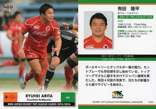 BBM / Regular Card / - / Coca-Cola Red Spark Thread Sparks / BBM2015 Japan Rugby Top League Card 2015-2016 TL66 [tarjeta regular] : Ryuhei Arita