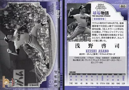 BBM / Regular Card / Yakult Swallows / BBM2016 Historic Collection Stadium Story 063 [tarjeta regular] : Keiji Asano