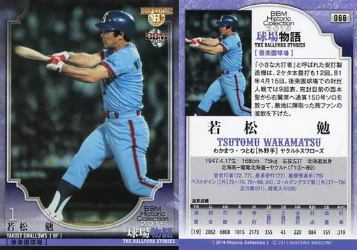Nombre comercial en japonés: BBM/レギュラーカード/ヤクルトスワローズ/BBM2016 ヒストリックコレクション 球場物語 066 [レギュラーカード] : 若松勉
