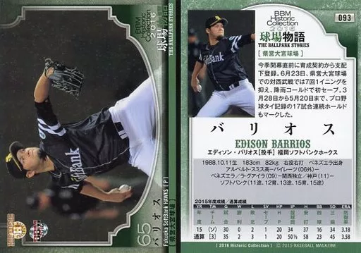 Nombre comercial en japonés: BBM/レギュラーカード/福岡ソフトバンクホークス/BBM2016 ヒストリックコレクション 球場物語 093 [レギュラーカード] : バリオス