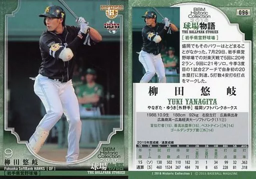 Nombre comercial en japonés: BBM/レギュラーカード/福岡ソフトバンクホークス/BBM2016 ヒストリックコレクション 球場物語 096 [レギュラーカード] : 柳田悠岐