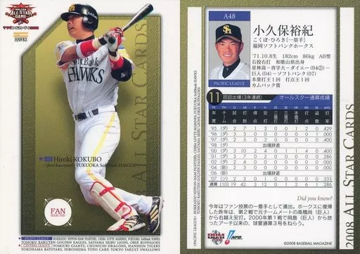 Nombre comercial en japonés: BBM/レギュラーカード/福岡ソフトバンクホークス/BBM2008 オールスターカード A48 [レギュラーカード] : 小久保裕紀