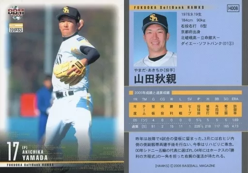 Nombre comercial en japonés: BBM/レギュラーカード/福岡ソフトバンクホークス/BBM2006 福岡ソフトバンクホークス H008 [レギュラーカード] : 山田秋親