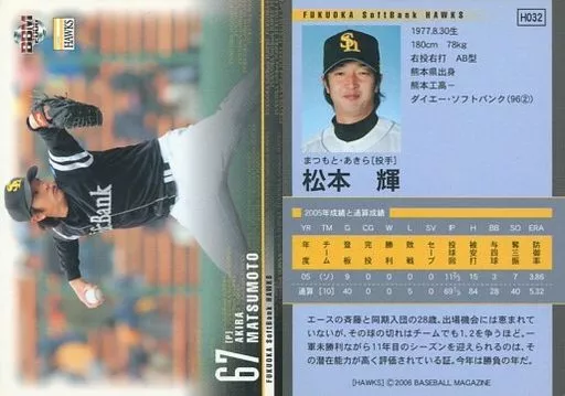 Nombre comercial en japonés: BBM/レギュラーカード/福岡ソフトバンクホークス/BBM2006 福岡ソフトバンクホークス H032 [レギュラーカード] : 松本輝