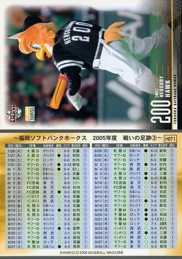 Nombre comercial en japonés: BBM/レギュラーカード/福岡ソフトバンクホークス/BBM2006 福岡ソフトバンクホークス H071 [レギュラーカード] : ハーキュリーホーク