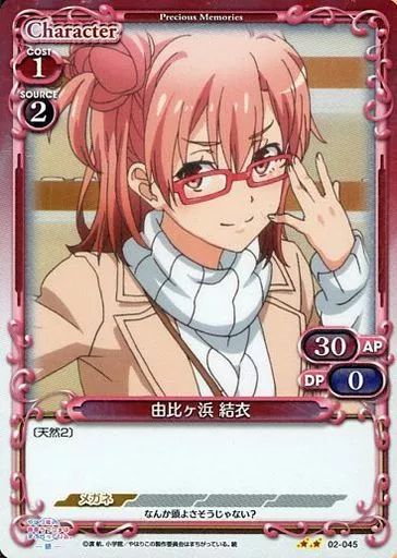 Nombre comercial en japonés: プレシャスメモリーズ/UC/キャラクター/赤/やはり俺の青春ラブコメはまちがっている。続 ブースターパック 02-045[UC]:(ホロ)由比ヶ浜 結衣