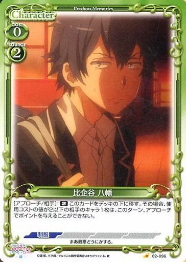 Nombre comercial en japonés: プレシャスメモリーズ/C/キャラクター/緑/やはり俺の青春ラブコメはまちがっている。続 ブースターパック 02-096[C]:比企谷 八幡