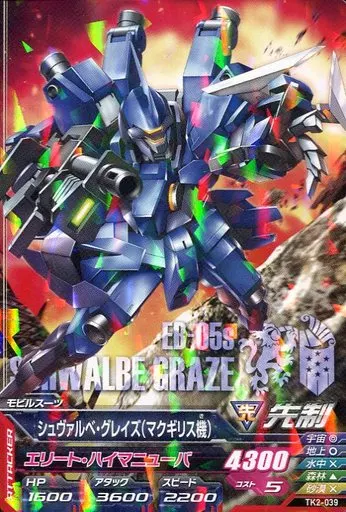 Nombre comercial en japonés: ガンダムトライエイジ/R/モビルスーツ/鉄血の2弾 TK2-039[R]:シュヴァルベ・グレイズ(マクギリス機)