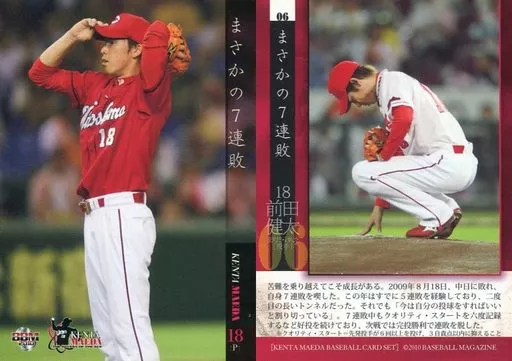 Nombre comercial en japonés: BBM/レギュラーカード/広島東洋カープ/BBM2010 前田健太-エース降臨- 06 [レギュラーカード] : まさかの7連敗